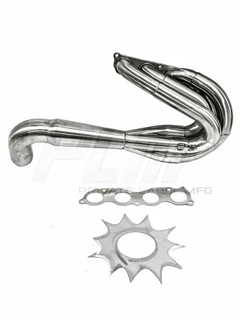 PLM Private Label Mfg. Power Driven K-Series Hood Exit Race Header features a true 4-1 merge collector with a megaphone and reverse cone to create maximum equal exhaust flow.