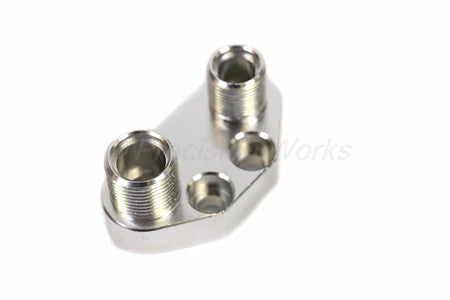 The Precision Works A/C Compressor Adapter Fitting is designed for use with most aftermarket A/C systems. This billet aluminum adapter is a direct fit for the Sanden SD7B10 (7176) compressor and allows for easy connection with -8AN and -10AN fittings.
