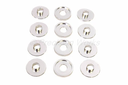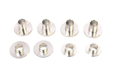 Made from one piece CNC machined billet aircraft aluminum, these collar inserts fit perfectly between the subframe and the chassis bolts. By installing these hard collar inserts rings, it will eliminate any play between the chassis and subframe, thus increasing vehicle stability and suspension precision.