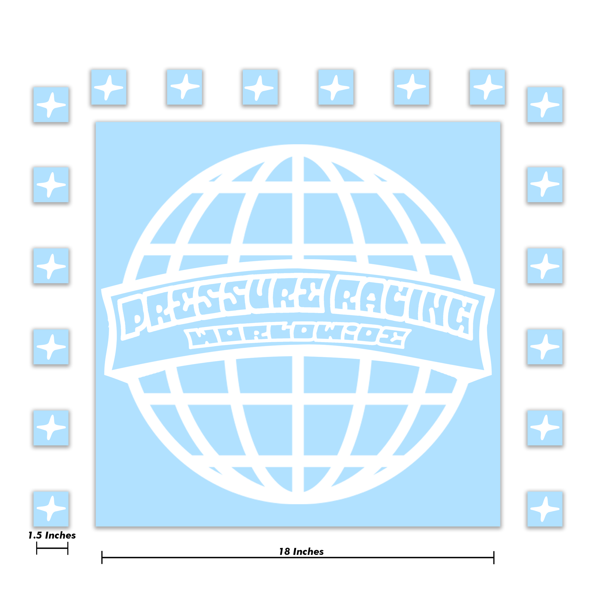 Includes one 18" Pressure Worldwide decal and 20 1.5" mini stars
